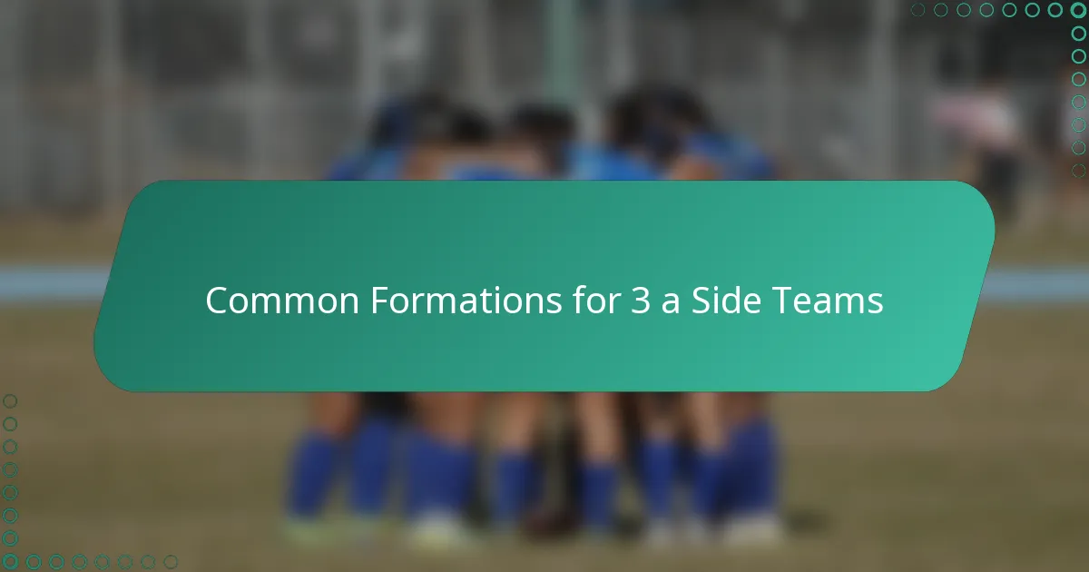 Three-a-side teams typically utilize several formations that cater to their tactical needs and player strengths. The most common formations include 1-2, 2-1, 1-1-1, 2-2, and 3-0, each offering unique advantages and challenges in gameplay.