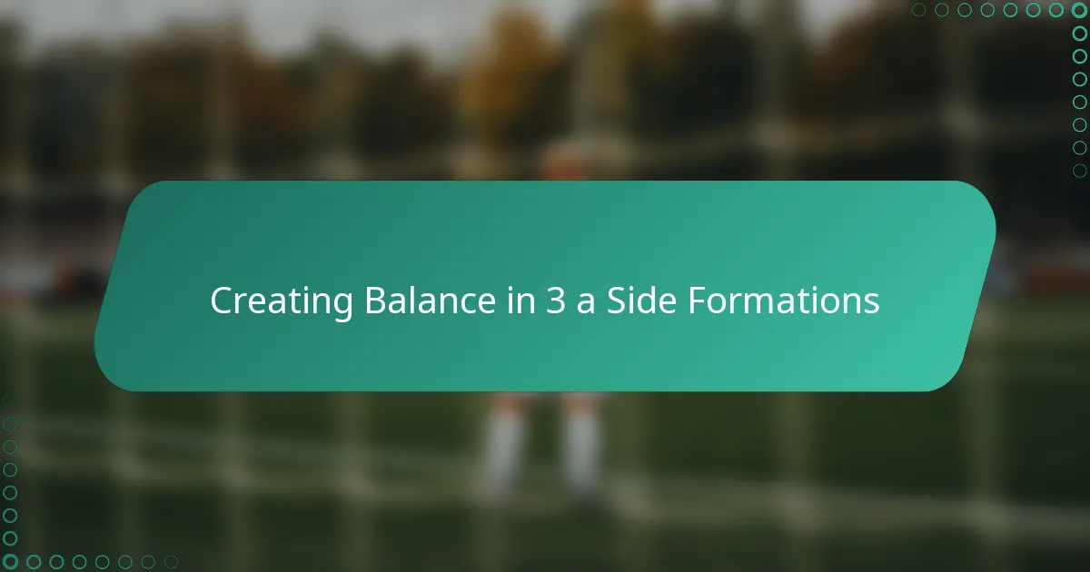 Creating balance in a three-a-side formation is essential for maximizing both offensive and defensive effectiveness. By ensuring an equal distribution of responsibilities among players, teams can enhance their teamwork and spatial coverage, allowing for fluid movement and adaptability during the game. Understanding player roles and maintaining effective communication are key to achieving this balance and avoiding common pitfalls that can disrupt team dynamics.